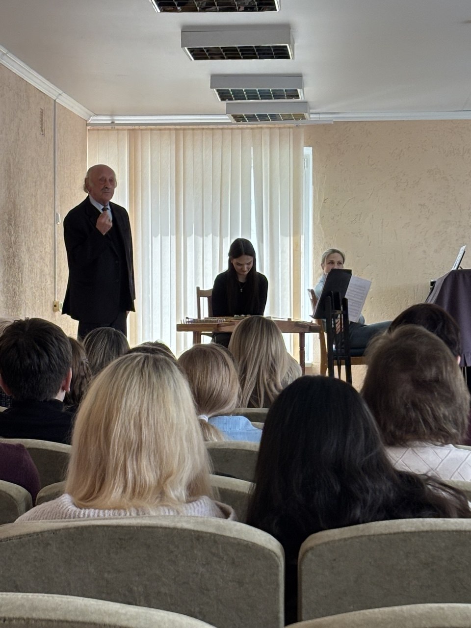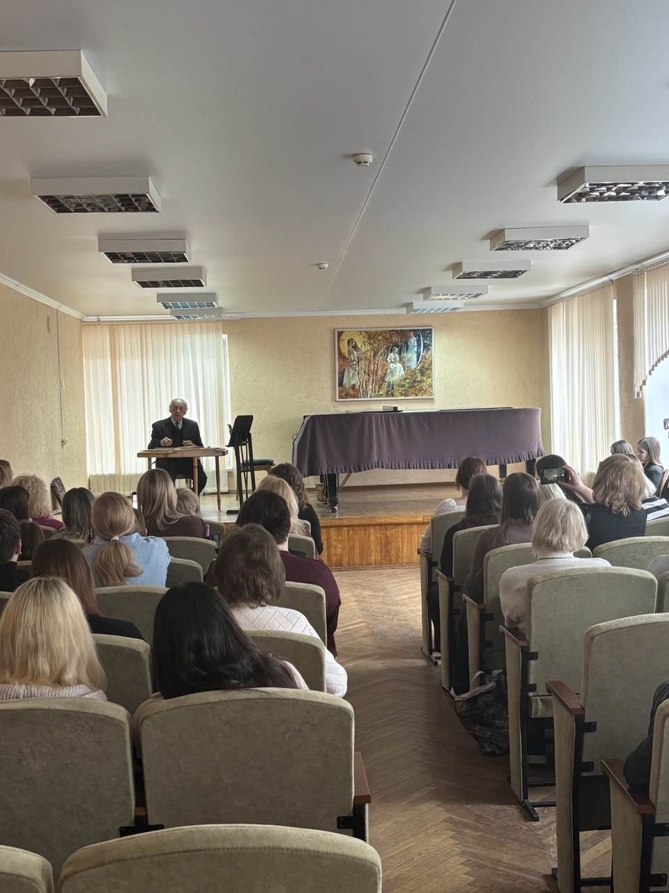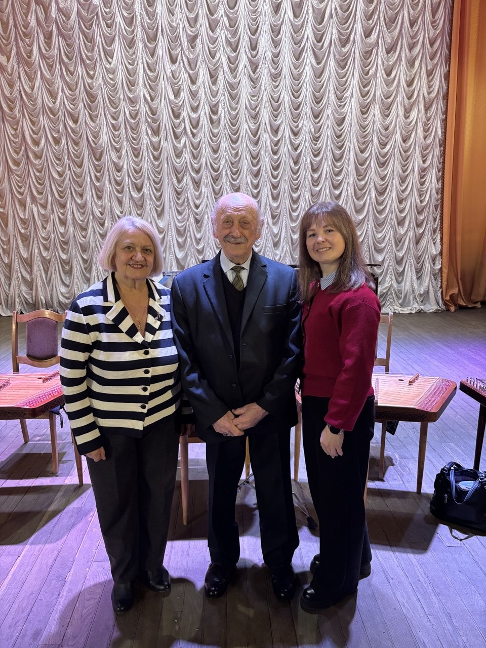 08.04.2026 года учащиеся и преподаватели цикловой комиссии «Струнные народные инструменты» УО «Мозырский государственный музыкальный колледж» посетили концерт ансамбля цимбалистов Белорусской государственной академии музыки «Лiлея». В рамках данного мероприятия прошла творческая встреча с руководителем ансамбля «Лiлея», народным артистом Беларуси, профессором Евгением Петровичем Гладковым. Евгений Петрович уделил большое внимание качественной подготовке учащихся к конкурсам исполнительского мастерства, продемонстрировал на инструменте правильный весовой удар цимбалиста. Особый акцент профессор направил на необходимость постоянного слухового контроля любого музыканта как в процессе исполнения произведений, так и при ежедневных занятиях. Концерт произвел большое впечатление на всех присутствующих, а мастер-класс вдохновил учащихся на дальнейшую работу.